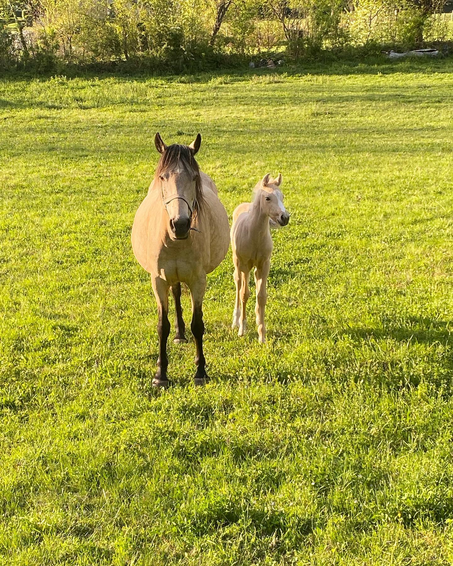 Suite à une boiterie persistante, Quichnette est partie en pension du côté de Séchilienne pour embrasser une nouvelle carrière : poulinière, rôle qui lui va à merveille.